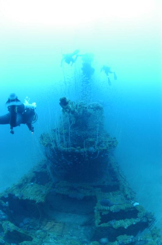 We dived the HIJMS Nagato twice, covering forward and rear guns, the observation deck and gun directory (the tower like structures needed on vessels of their time, before radar, to aim and fire the guns from). The 4 massive propellers and giant rudder in about 32mts are a sight that will remain etched in your memory. Absolutely awesome.