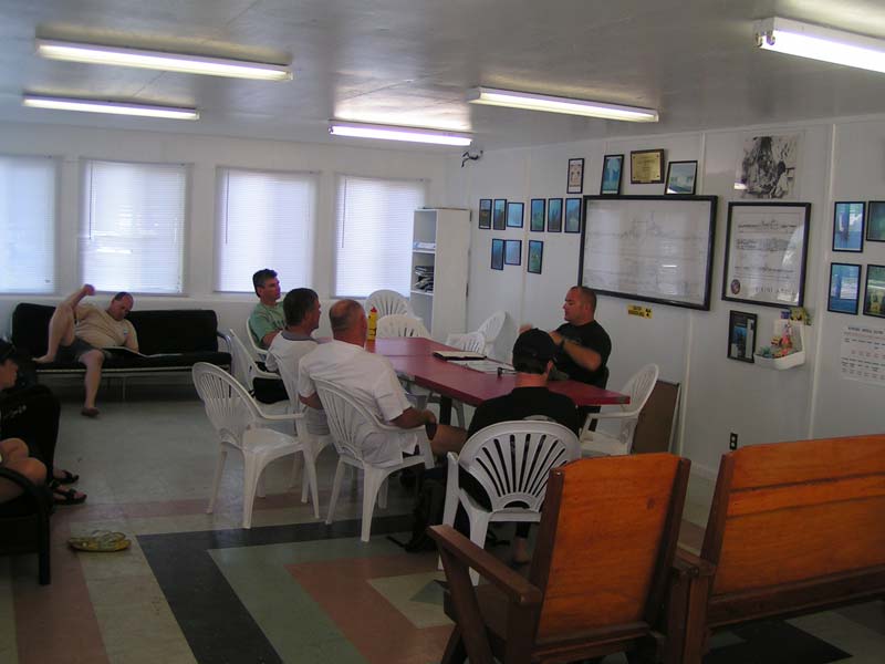 The days diving is run with military precision. Jim has a military background in UK and was a tank group commander in Desert Storm. Breakfast starts at 0700hrs, first dive briefing 0800hrs, lunch 1200hrs afternoon dive briefing 1400hrs.