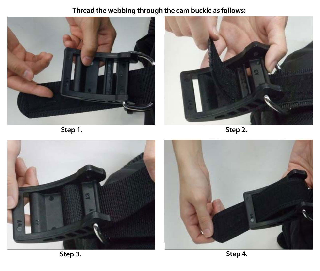 Download/view our guide on How to Thread a Soft Cam Band Tank Strap Buckle (PDF, 1 page, 86 Kb).