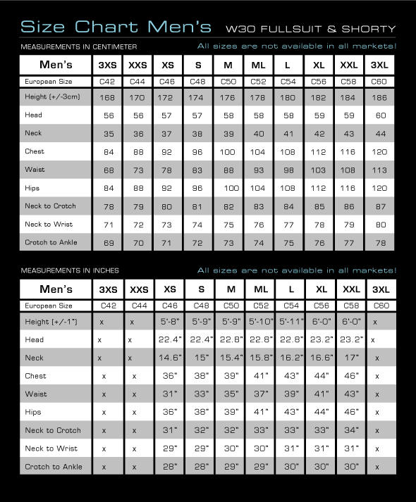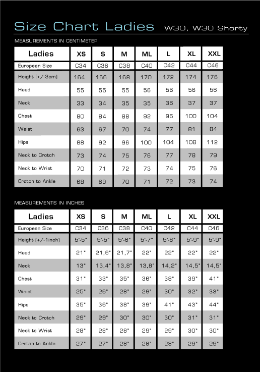 Size really matters! Despite similarities in measurements or weight, every person's body is unique. The Waterproof size chart is a good starting point to estimate your size, but because a wetsuit should really fit like a second skin, you really need to take the time to get it absolutely right.
