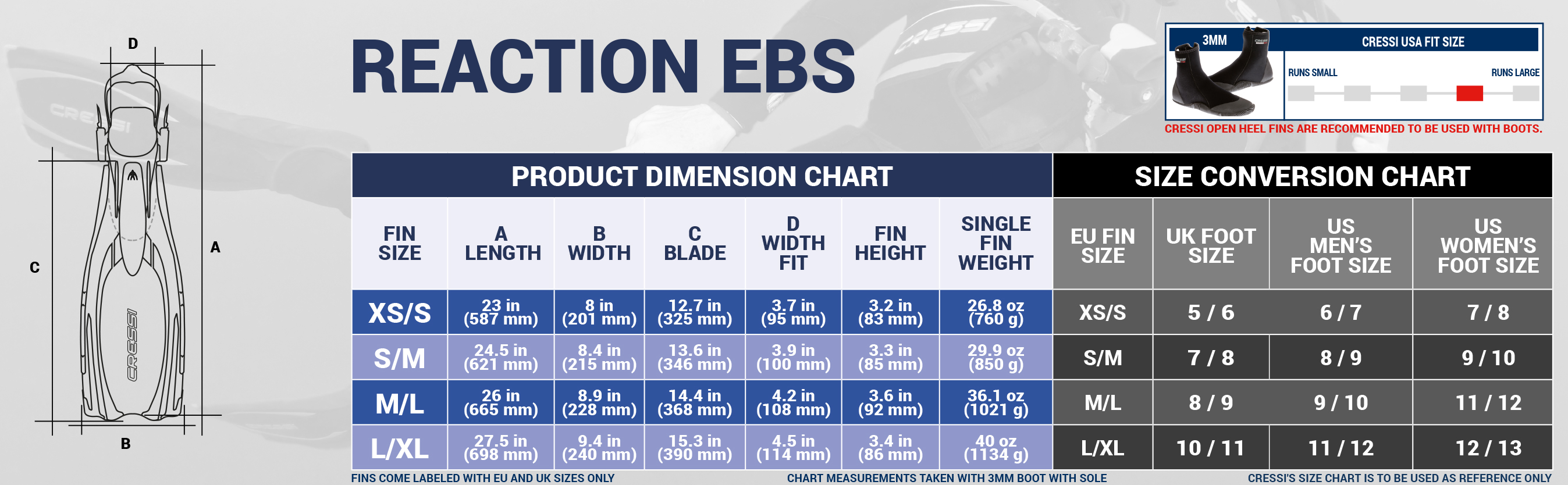 Cressi Reaction EBS Fin Size Chart